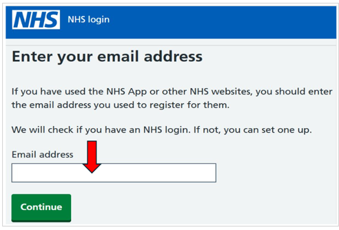 - Click on the button 'NHS Continue to NHS login' to begin.